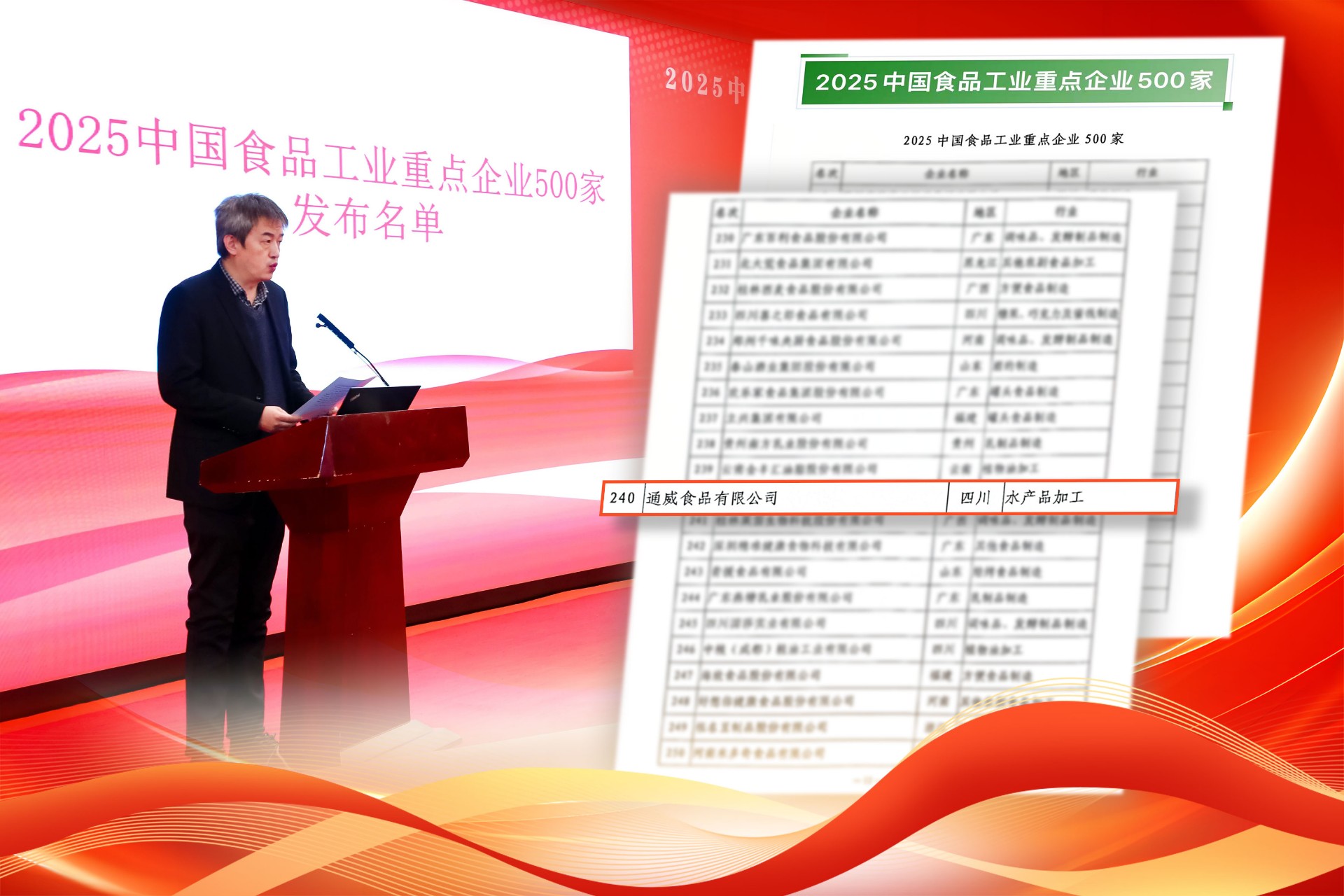 2025年12月25日,由中國食品工業協會在北京發布的《2025中國食品工業重點企業500家分析研究》正式揭曉,通威食品有限公司(......